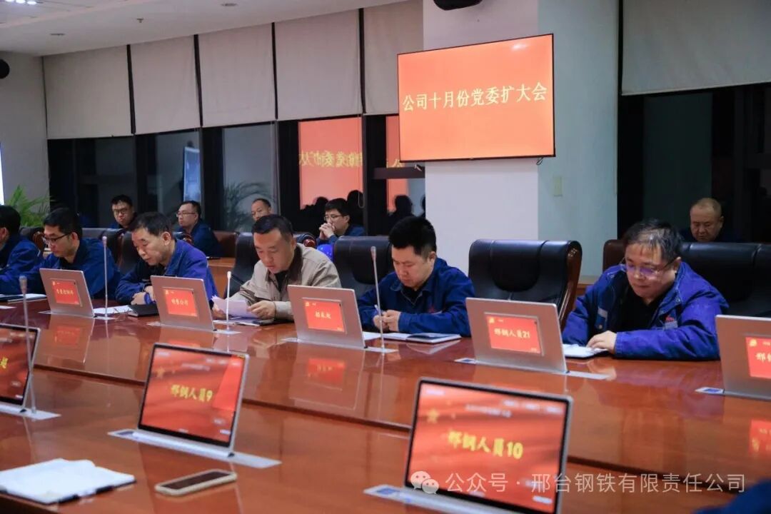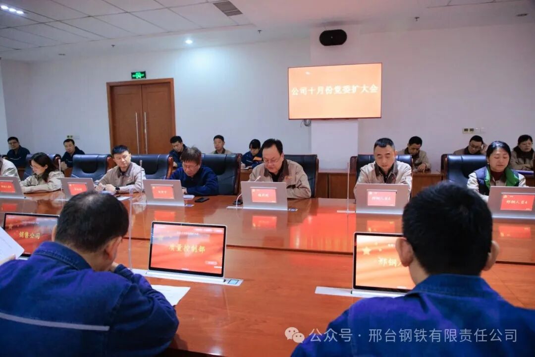 10月30日,公司黨委在公司辦公樓207會(huì)議室召開10月份黨委擴(kuò)大會(huì),公司領(lǐng)導(dǎo)田新中、魏利剛、李紅超等高層及全體中層管理人員、主任級(jí)、副主任專業(yè)職務(wù)人員參加了會(huì)議。駐威縣新廠人員通過視頻會(huì)議系統(tǒng)參會(huì)。